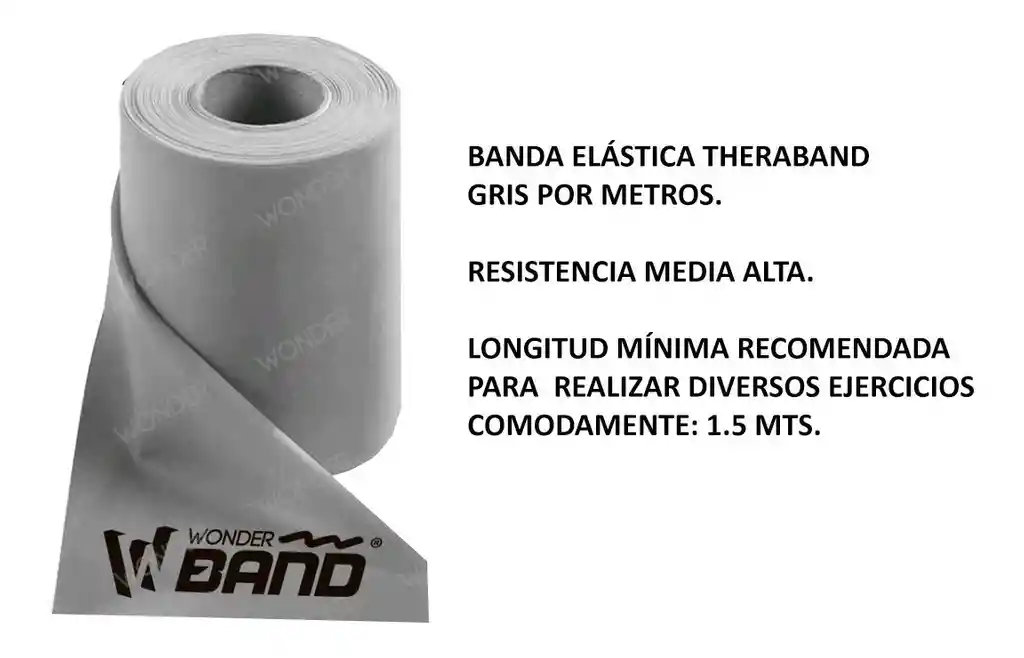 USOS • Se recomienda para ejercicios de fortalecimiento y tonificación de piernas, brazos, hombros, y espalda. • Puede usarse en procesos de fisioterapia y rehabilitación. MEDIDA: 1.5 metros COLOR OFERTADO: • Gris – resistencia Media Alta – 10,2 kg COMPOSICIÓN: Látex.