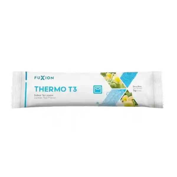 MIX DE TÉS (TË VERDE, NEGRO Y ROJO) + CETONAS DE FRAMBUESA + GARCINIA CAMBOGIA + L-CARNITINA + CAFÉ VERDE + ÁCIDO ALFA LIPOICO + VITAMINA B6 + CROMO Esta combinación de ingredientes te permitirá: Acelerar la pérdida de peso y reducción de medidas. Su acción termogénica acelera la quema de grasa localizada. Reducir la acumulación de grasa en el organismo. Excelente apoyo en casos de hiperlipidemia (colesterol alto). Acelera el metabolismo de las grasas. Excelente apoyo en casos de hígado graso Reducir riesgos en tu salud. Aumentar tu resistencia, por lo que es recomendable que lo consumas antes de una rutina de ejercicio. ¡TRANSFORMA LA GRASA EN ENERGÍA! Delicioso mix de tres tés, con limón y extractos vegetales que promueve un óptimo metabolismo, generando energía a partir de la grasa acumulada en el cuerpo. Por lo que contribuye a la reducción de medidas y la pérdida de peso, para lograr un organismo más saludable. Disolver el contenido de un stick en una taza con 180 ml de agua caliente. Uno o dos sticks al día, después de las comidas. Si haces ejercicio, tómalo antes de entrenar. Thermo T3 ayuda a generar energía a partir de la quema de grasa, por lo que reduce la acumulación de reservas de grasa en el organismo. Aumenta tu resistencia, por lo que es recomendable que lo consumas antes de una rutina de ejercicio. Thermo T3 de Fuxion en Colombia RSA-005586-2018 REGISTRO INVIMA. Producto elaborado bajo estándares de calidad nacionales e internacionales. Este producto es un suplemento dietario. No es un medicamento y no suple una alimentación equilibrada. Su consumo es responsabilidad de quien lo usa. No se recomienda para menores de edad, mujeres embarazadas o en periodo de lactancia, salvo indicación médica. Consulte con su médico si está tomando otros medicamentos o tiene condiciones médicas preexistentes.