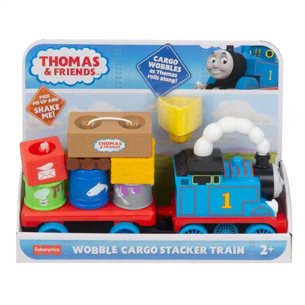 Nuevo Thomas carga tambaleante, cómo el clásico juego de apilar bloques para niños de 2 años en adelante. Características principales: Motor de empuje a gran escala; un carro de carga con seis piezas apilables; empuja a Thomas mientras su carga se tambalea de un lado a otro; Thomas puede desconectarse de la carga con la ayuda de los padres; La nube de vapor actúa como un asa para transportarlo fácilmente y jugar hacia adelante o atrás.