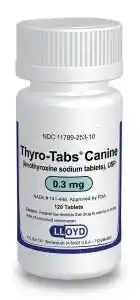 THYRO-TABS CANINE Tratamiento Hipotiroidismo Canino 0.3 mg 120 tabletas Tratamiento para el hipotiroidismo en perros y gatos Para el meses de uso en perros para la corrección de las condiciones asociadas con bajas de hormonas circulantes tiroides (hipotiroidismo)