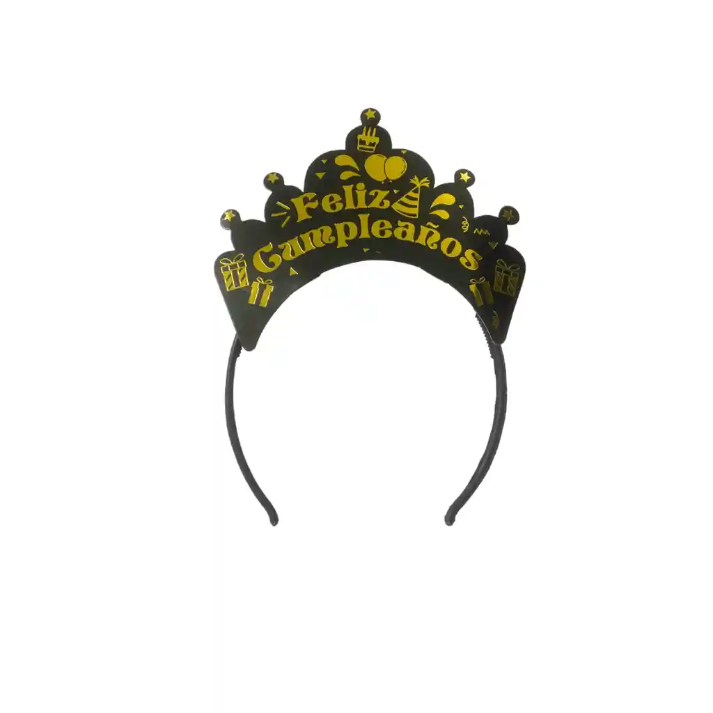 TIARA CARTON FELIZ CUMPLEAÑOS NEGRO CON DORADO X 12 UND