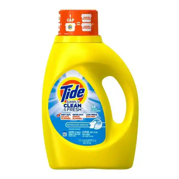 El Detergente Líquido de Alta Eficiencia Tide Simply Clean And Fresh Combate la Suciedad y Los Olores Con el Doble de Poder Que el Detergente de Bicarbonato de Sodio (1). Con el Poder de Tide Solo Necesita Una Dosis Por Carga y no es Necesario un Tratamiento Previo. El Aroma Refreshing Breeze Infunde su Ropa Con Notas Florales Frutales y Amaderadas Para un Aroma Fresco y Limpio en Cada Carga.