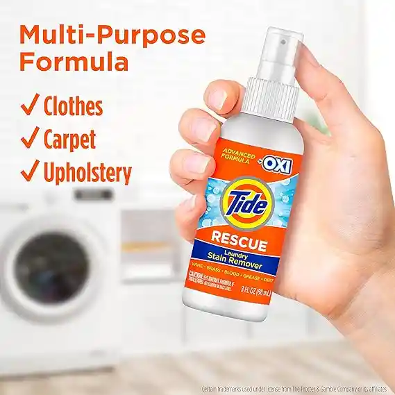 De la marca #1 en lavandería: nueva fórmula avanzada diseñada para las manchas más duras y difíciles, específicamente formulada para manchas duras en ropa, alfombras, tapicería, ropa de cama y mucho más. No solo para manchas de lavandería: Tide Rescue elimina las manchas difíciles en la ropa, tapicería, alfombras, ropa de cama para mascotas, asientos de coche y más causados por la suciedad, alimentos, mascotas, vino, hierba, grasa, sangre, café, etc.