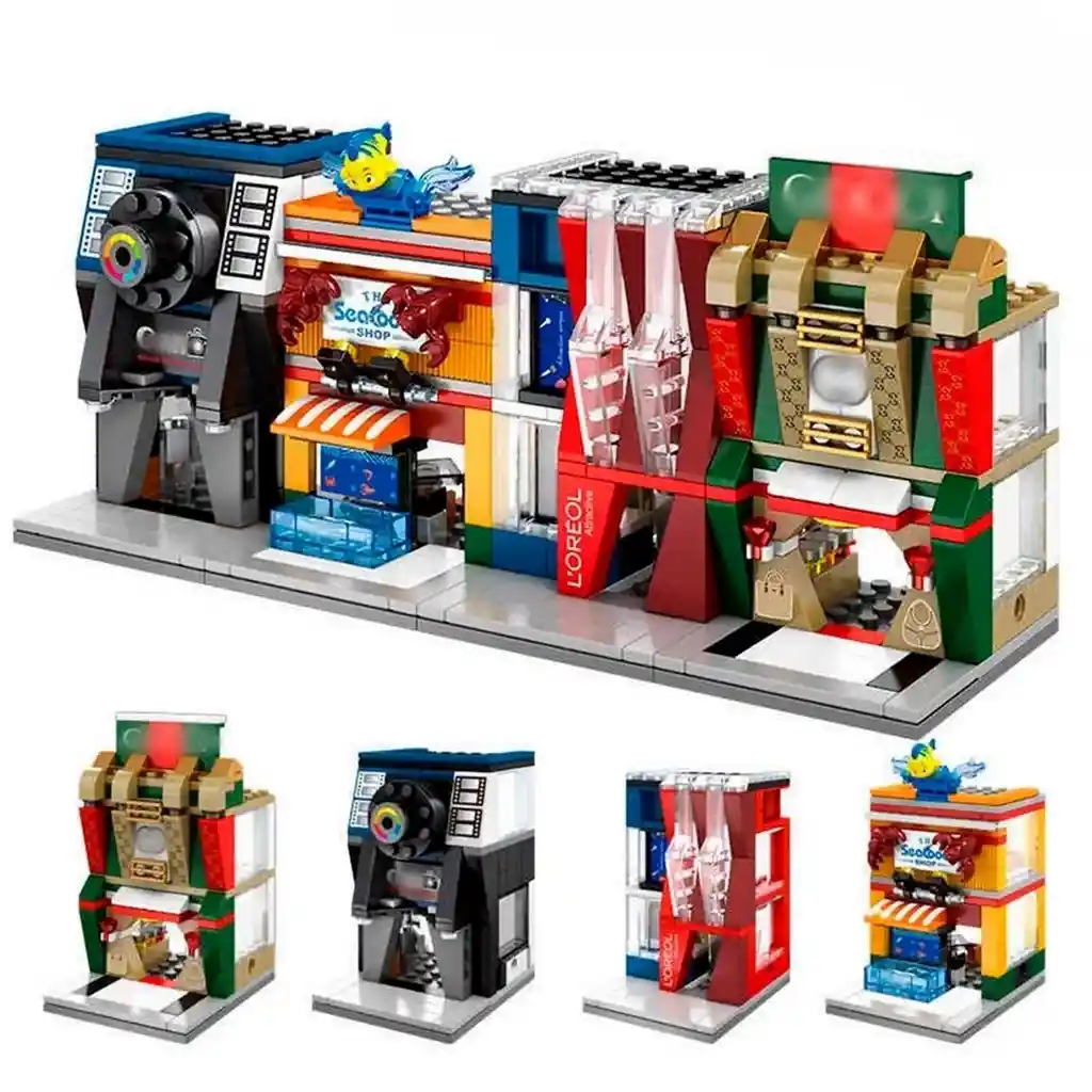 Hermoso juego de construcción que unidas forman una increible set de 4 tiendas de diferentes marcas cada uno con sus accesorios, divierte y comparte en familia y amigos con este juguete con piezas armables que permitirá a los niños (a) desarrollar su imaginación e intelecto, su memoria para el armado y desarmado de esta figura. El producto viene en su caja sellada y con su manual de armado para que sigas los pasos de construcción, este producto esta recomendado para niños mayores de 6 años ya que contiene piezas pequeñas. Ficha Técnica: Dimensiones de cada tienda : 10.5 cm x 8 cm x 6 cm Material : Plástico ABS no tóxico, inodoro e inofensivo Edad Recomendada : 6 Años en adelante. Referencia: C3243 Certificado de conformidad: E5-0359-2021 Términos de garantía: Para defectos de fábrica o retractos: Por favor revise el producto apenas lo reciba y antes de usarlo. No aplican ley de retracto o defectos de fábrica luego de usar el producto. Se manejan máximo 5 días para reportar defectos de fábrica (por ejemplo, producto funciona mal, piezas faltantes, rotas, etc). Para hacer efectiva la devolución el producto debe devolverse con el empaque original, el cual debe estar en buen estado, incluir todos los documentos y las partes completas y sin daños. Los cuidados y recomendaciones para mantener un producto en buen estado son los siguientes: No aplicarle perfumes ni cremas directamente, no mojarlos, no dejarlos caer y procurar limpiarlos para retirar suciedad.