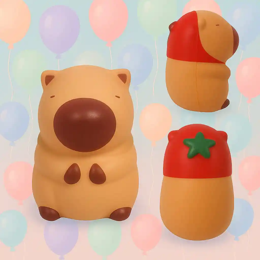 Squishy Capibara Antiestrés Disfruta de la ternura y suavidad de este adorable Squishy de Capibara. Diseñado con un estilo kawaii, es perfecto para aliviar el estrés, la ansiedad y mejorar la concentración mientras lo aprietas suavemente. * Material suave y resistente * Regresa siempre a su forma original * Ideal como juguete antiestrés, decoración de escritorio o regalo tierno •Medidas: •Alto: 11cm •Ancho: 7cm ¡Un compañero perfecto para relajarte y llenar tus días de dulzura!