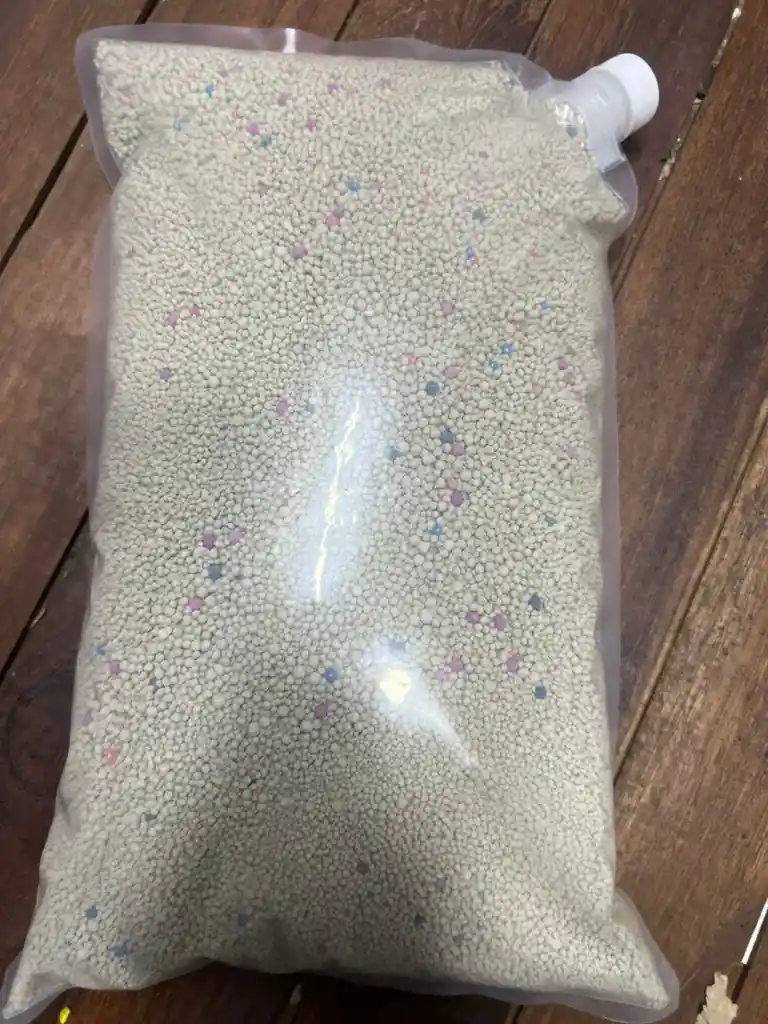 Absorbe instantáneamente la humedad aglomerando los desechos generados , controla olores y propicia un ambiente más sano, es de textura suave, por lo que no irrita la piel del gato, no se adhiere a las patas. Modo de empleo: Verter aproximadamente 5 cm del producto dentro de la bandeja sanitaria de la mascota. Reponer a medida que disminuya, diariamente retirar y eliminar las excretas sólidas y las partículas aglomeradas, limpiar la bandeja cada 8 días con agua y jabón