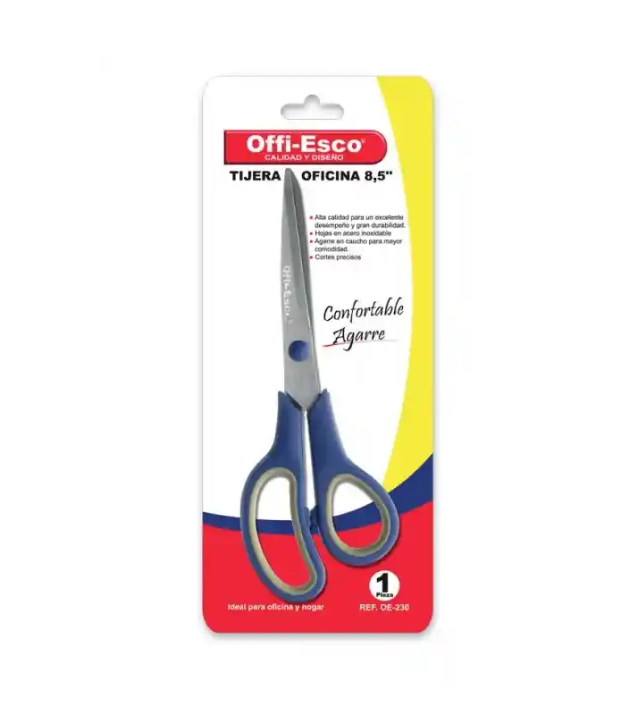 TIJERA ACERO INOXIDABLE OFFI-ESCO 8,5 PULGADAS PARA USO ESCOLAR Y DE OFICINA
