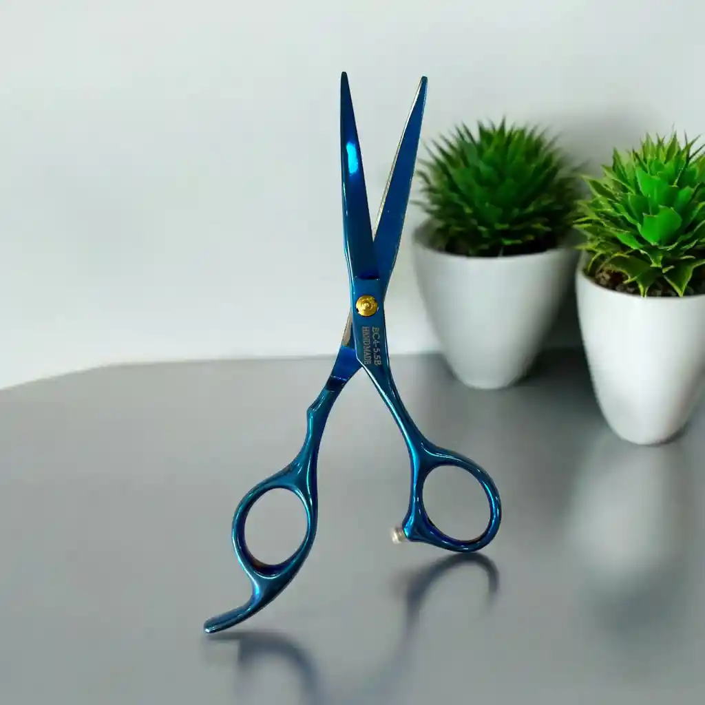 Tijeras profesionales de alta gama: hechas de acero inoxidable. La tijera de corte de cabello tiene cuchillas afiladas que no dañan ni desgarran las puntas del cabello.. Adecuado para cortar el cabello húmedo o seco. Diseño ergonómico: El cómodo mango curvado facilita el proceso de corte, permitiendo que cada dedo trabaje de forma independiente y libre, asegurando un uso a largo plazo sin fatiga. Hemos mejorado el anillo para un agarre más grande y cómodo. Las tijeras son de 6" y el tipo de filo es liso. Color Azul