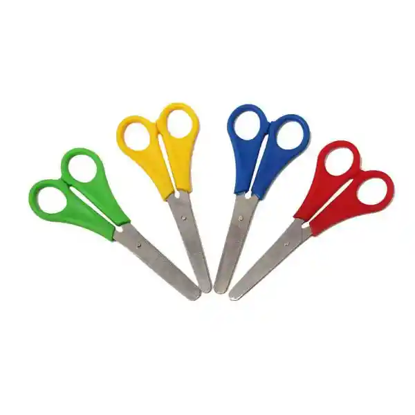 Contenido: 1 tijera. punta Roma. Material: Metálicas, mango de pasta. Tamaño: 12 cm de largo. Calibre: 6″. Colores: Verdes, Azules, Amarillas Y Rojas. Tijeras para corte de papel de diferentes tamaños. metálicas. Para trabajos escolares, artísticos, manualidades. Ideal para papel pero también cortan tela, cartón, cabello y cada todo tipo de material blando.