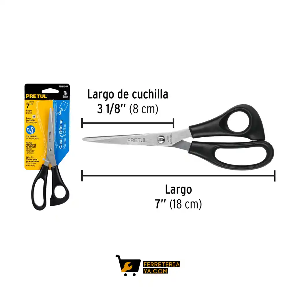 Tijera 7" para casa y oficina, de acero inoxidable, PRETUL Hojas de acero inoxidable Mangos resistentes al impacto Ideal para oficina, hogar y manualidades