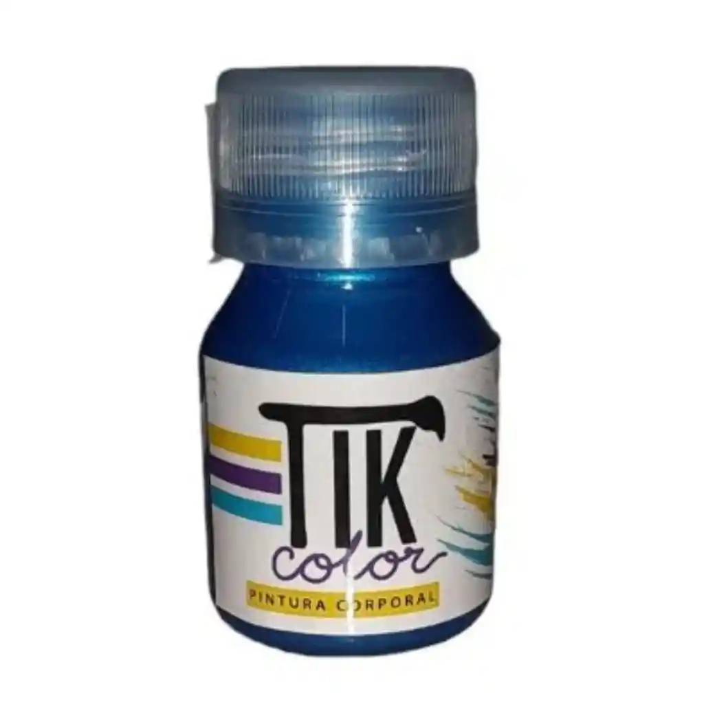 TIK COLOR PINTURA AZUL CLARO METAL 30ML. Aplicar con pincel o esponja sobre la piel. retirar con paño húmedo y lavar con agua y jabón. Evite el contacto con los ojos y heridas, En caso de reacción adversa lave la zona con agua y suspenda su uso.