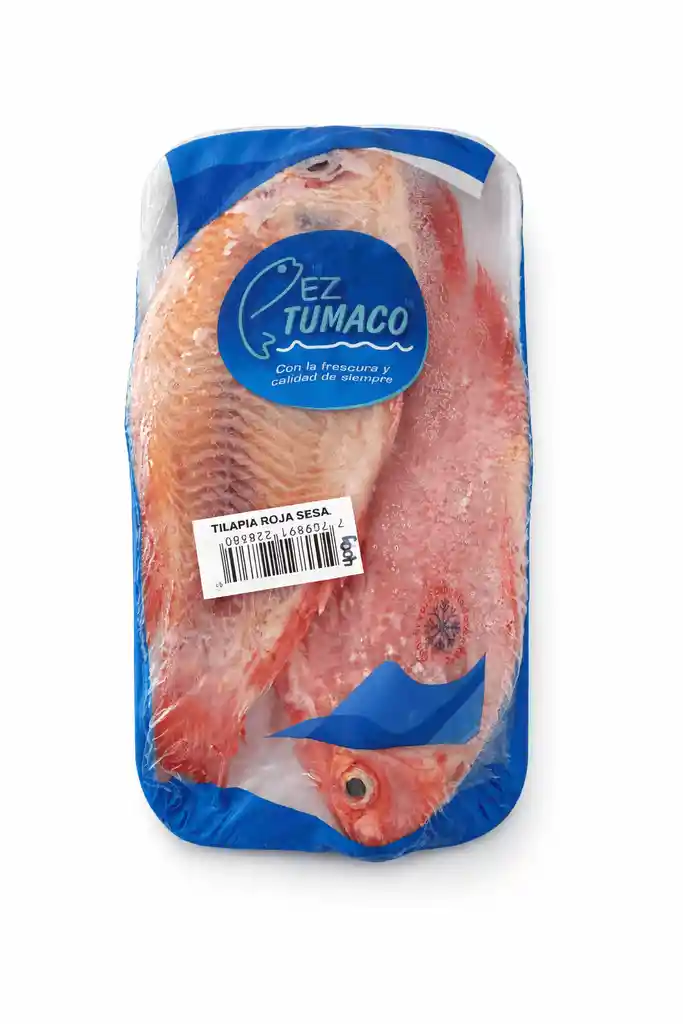 ilapia roja presentada en bandeja, de carne firme y sabor suave, ideal para freír, asar o preparar al horno.