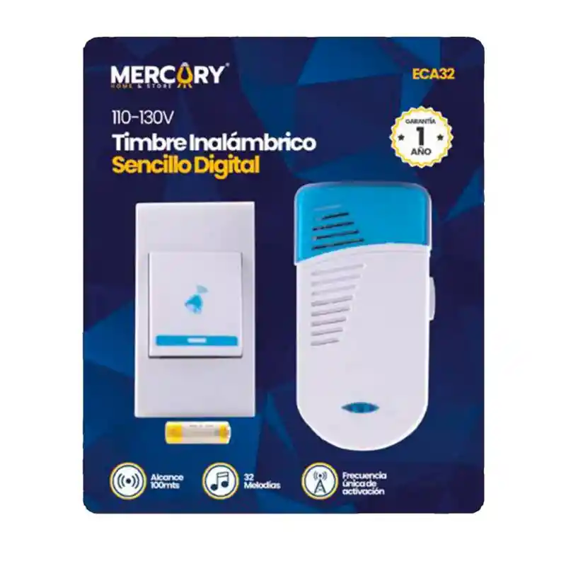 Timbre inalámbrico sencillo digital - alcance 100 metros - 32 melodías - color blanco - fácil instalación - alta sonoridad y gran fiabilidad. Diseño de fácil montaje e instalación - sincables ideal para oficina y hogares.Color: Blanco/AzulSalidas sonoras: 1Melodías: 32Material: PlásticoAlimentación: BateríaSistema: Inalámbrico