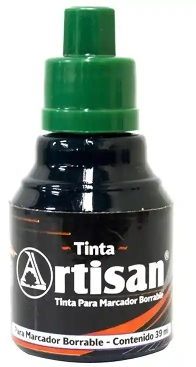 La tinta Artesan para marcador borrable es un producto de recarga diseñado para prolongar la vida útil de los marcadores de la misma línea, permitiendo escribir sobre superficies no porosas como tableros acrílicos, porcelanizados y vidrios, y borrarse fácilmente en seco.