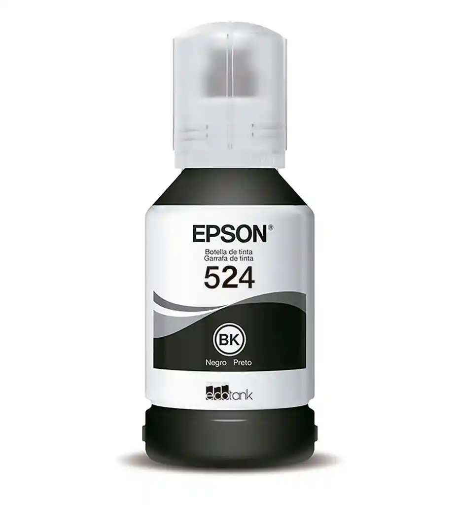 La tinta Epson 524 negra (T524120-AL) es una botella de tinta pigmentada original para impresoras EcoTank de gama profesional como las series L6580, L15150, L15160, y L6490, ofreciendo alta calidad, nitidez y durabilidad con un gran rendimiento de aproximadamente 7,500 páginas y un sistema de recarga fácil y limpio gracias a su diseño y botella de 127 ml.