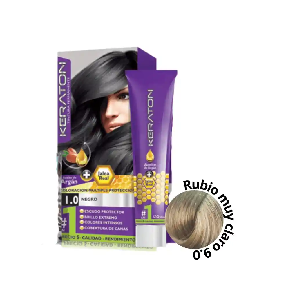TINTE PERMANENTE KERATON CON ACEITE DE ARGAN Y JALEA REAL. CONTIENE: - Tintura de 60ml. - Crema Oxidante 60ml. - Tratamiento en sachet x 30ml para después de la tintura. DESCRIPCIÓN: Coloración capilar permanente en crema que proporciona una completa protección al cabello duran el proceso de coloración, gracias a su formulación con: ACEITE DE ARGAN rico en acido grasos como el omega 3, 6 y 9 el cual crea una nutrición excepcional en la fibra capilar debido a su poder antioxidante y complementado con la JALEA REAL la cual contiene una altísima concentración de nutrientes esenciales como glúcidos, proteínas, lípidos, vitamina B y E, ácido fólico, oligoelementos, sales minerales y aminoácido, entre otros componentes que nutren el cabello rápidamente devolviéndole el brillo, la sedosidad y la hidratación, protegiéndolo de las agresiones externas del clima. Gracias a esos dos activos naturales, KERATON TINTURA PERMANENTE ofrece finalmente una coloración múltiple y una protección antes, durante y después del proceso de coloración.