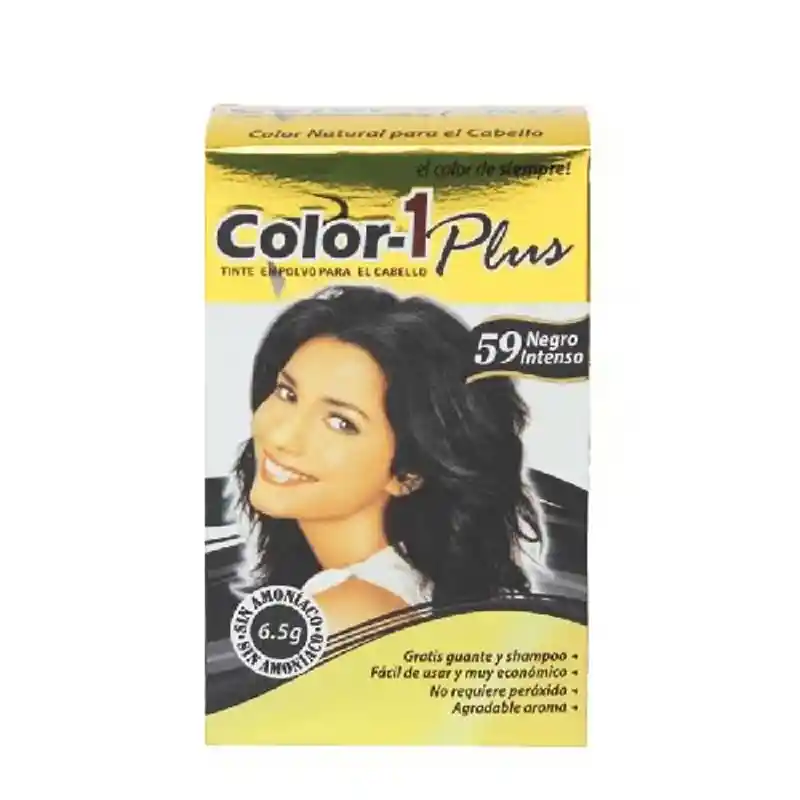 Tinte en Polvo Color-1 Plus sin amoniaco: Deja tu cabello suave y sedoso con la tintura Color-1 Plus disponible en 9 tonos, que te brindan una coloración permanente con colores vibrantes tapando el 100% de las canas. Tinte sin peróxidos ni aguas oxigenadas que revitaliza e hidrata tu cabello. Modo de Uso:Dependiendo del largo del cabello tomar el contenido de uno o dos sobres y verterlos en un recipiente de vidrio. Con la copa medidora agregar dos y media copas por sobre de tintura hasta obtener una crema. Posteriormente inicie la aplicación en el cabello ligeramente húmedo (no hay necesidad de lavar el cabello antes de aplicar) con una brocha o peine uniformemente de la raíz hacia afuera. Espere entre 15 y 20 minutos (entre más tiempo más intenso el tono) y enjuague con abundante agua.