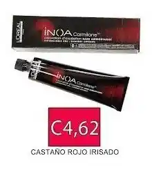 SIN AMONIACO Tinte Inoa Tono C4.62 Castaño Rojizo Irisado 60ml Coloración permanente sin amoníaco y sin olor para vivir una experiencia única. Respeto del cabello y confort óptimo del cuero cabelludo. Reflejos naturales, brillo sublime y cobertura perfecta. Beneficios: Cobertura de hasta el 100% de los cabellos blancos. Coloración de larga duración. INCLUYE Peróxido, guantes y tratamiento.