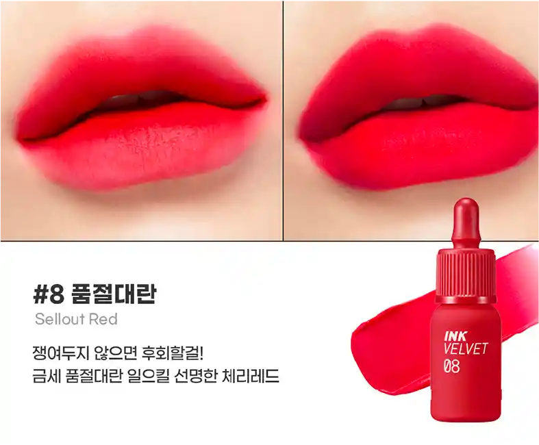 Para el color más intenso de la marca Peripera, Ink the Velvet deja tus labios suaves, sin visibilidad de lineas finas o sequedad!