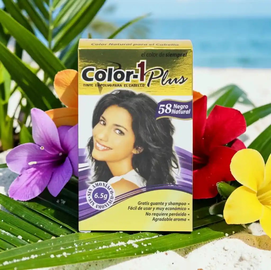 Tinte en Polvo Color-1 Plus sin amoniaco: Deja tu cabello suave y sedoso con la tintura Color-1 Plus,que te brinda una coloración permanente con colores vibrantes tapando el 100% de las canas. Tinte sin peróxidos ni aguas oxigenadas que revitaliza e hidrata tu cabello. Presentación: 6.5 G.