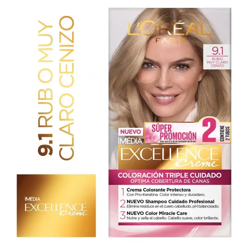 EXCELLENCE CREME TRIPLE PROTECCIÓN: Excellence Creme Triple Protección protege el cabello antes, durante y después de la coloración. Además cubre 100% las canas Sistema Triple Protección: Antes: Serum Protector con Ceramida – Ayuda a proteger las zonas frágiles del cabello, particularmente las puntas. Tu cabello queda preparado para recibir el color. Durante: Crema Colorante con Pro-Keratina de – Cubre cada mecha para dar color y perfecta cobertura de canas reforzando y protegiendo el cabello. No escurre. Después: Tratamiento Acondicionar con Colágeno – Revitaliza y acondiciona, ayudando a proteger tu cabello después de la coloración. El Resultado: Color Rico, Radiante y de larga duración.100% cobertura de canas. Cabello más fuerte y suave al tacto.