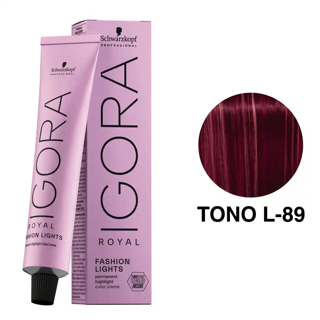 Tinte Igora Royal FASHION LIGHTS Rojo Violeta L-89 + Peróxido (10, 20, 30 volúmenes) + guantes, escoge el peróxido de tu preferencia en un mensaje.