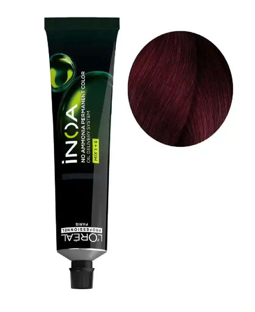 Tinte para el cabello Inoa de LOréal Professionnel, un sistema revolucionario de coloración permanente a base de aceite y sin amoniaco. Los tintes Inoa Loreal no contienen olor ni amoniaco, aportando un confort óptimo al cuero cabelludo y cubriendo el 100% de los cabellos blancos. El paquete incluye: 1 tubo de 60 gr de Inoa en el tono 4.62 Castaño Rojizo Irisado. 1 oxigenta Inoa de 60 ml (empacada con 20 vol.) Instrucciones de uso al interior del empaque. 1 par de guantes.