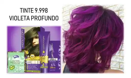 TINTE PERMANENTE KERATON CON ACEITE DE ARGAN Y JALEA REAL. TINTE 9.998: TINTE VIOLETA PROFUNDO CONTIENE: - Tintura de 60ml. - Crema Oxidante 60ml. - Tratamiento en sachet x 30ml para después de la tintura. DESCRIPCIÓN: Coloración capilar permanente en crema que proporciona una completa protección al cabello duran el proceso de coloración, gracias a su formulación con: ACEITE DE ARGAN rico en acido grasos como el omega 3, 6 y 9 el cual crea una nutrición excepcional en la fibra capilar debido a su poder antioxidante y complementado con la JALEA REAL la cual contiene una altísima concentración de nutrientes esenciales como glúcidos, proteínas, lípidos, vitamina B y E, ácido fólico, oligoelementos, sales minerales y aminoácido, entre otros componentes que nutren el cabello rápidamente devolviéndole el brillo, la sedosidad y la hidratación, protegiéndolo de las agresiones externas del clima. Gracias a esos dos activos naturales, KERATON TINTURA PERMANENTE ofrece finalmente una coloración múltiple y una protección antes, durante y después del proceso de coloración. NSOC83823-18CO