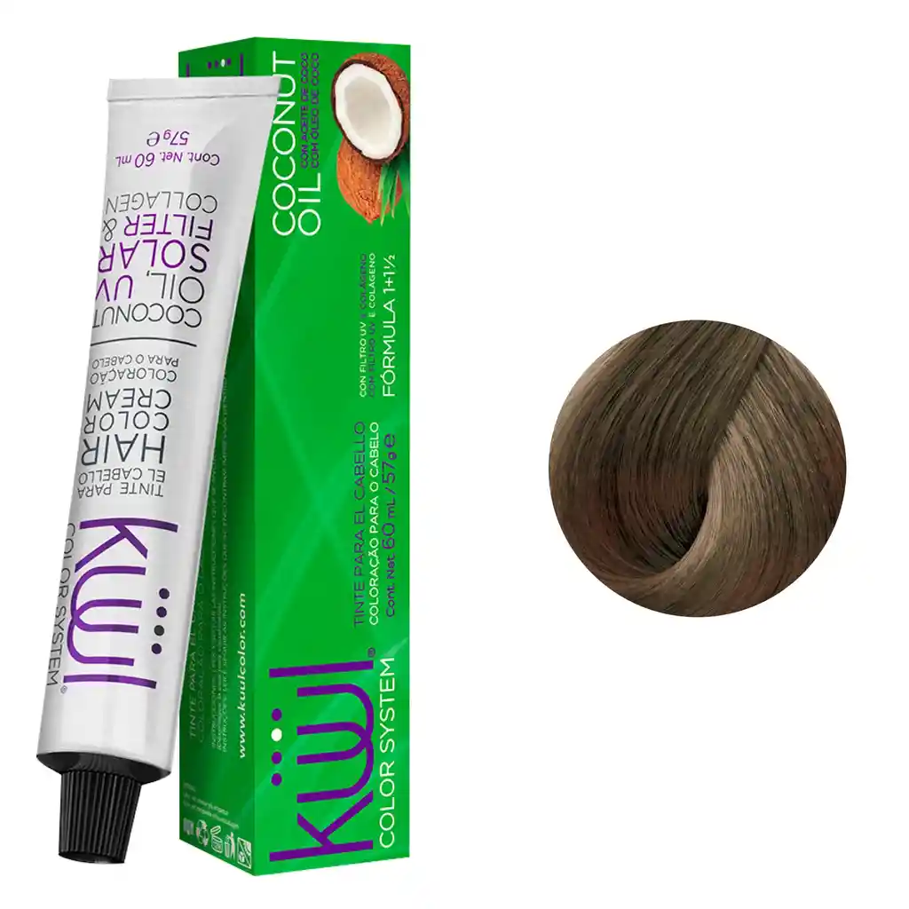 Sistema de coloración que incorpora en su fórmula componentes nutritivos como la proteína de trigo y aceite mineral que brindan ingredientes esenciales para la regeneración del cabello, dando como resultado sedosidad, hidratación, brillo y color intenso. Gracias a su fórmula, Küül Color System aporta una mayor cantidad de pigmentos que prolongan la intensidad del color en el cabello y está enriquecido con filtro solar para una mayor protección.  Beneficios: Tinta permanente. Cubre el 100% de cañas Devuelve naturalidad, fortaleza y brillo al cabello. Modo de uso: Una vez seleccionado el tinte y peróxido apropiado. Utilizar un recipiente no metálico. La fórmula es 1 + 1 1⁄2. Es decir, 60ml de tinte + 135 ml de peróxido. Debes aplicarlo con brocha y cabello seco. Cabello Natural: Aplique los medios a puntas y espere 20 minutos. Después aplica en la raíz y espera 30 minutos más. Enjuaga solo con agua.