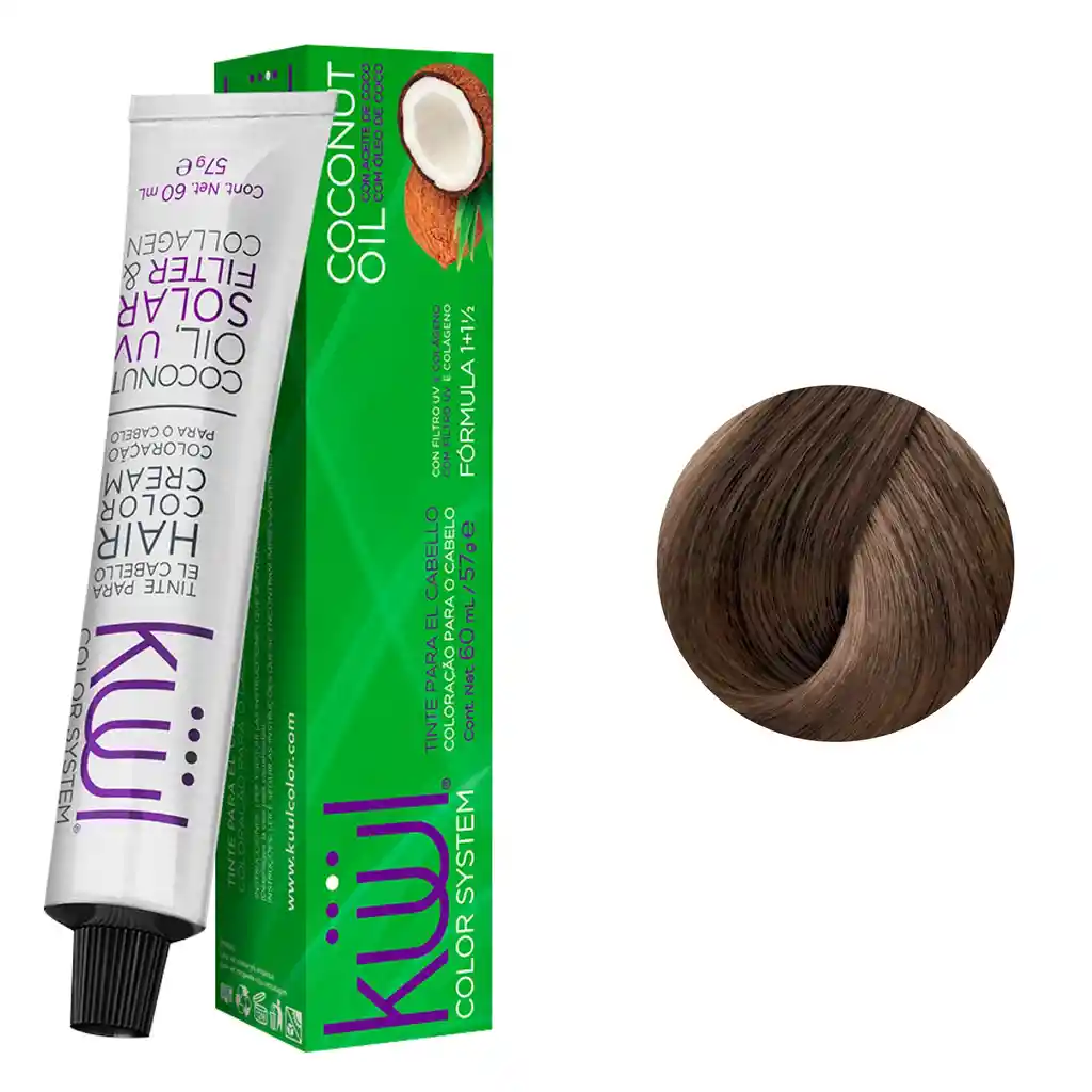 Sistema de coloración que incorpora en su fórmula componentes nutritivos como la proteína de trigo y aceite mineral que brindan ingredientes esenciales para la regeneración del cabello, dando como resultado sedosidad, hidratación, brillo y color intenso. Gracias a su fórmula, Küül Color System aporta una mayor cantidad de pigmentos que prolongan la intensidad del color en el cabello y está enriquecido con filtro solar para una mayor protección.  Beneficios: Tinta permanente. Cubre el 100% de cañas Devuelve naturalidad, fortaleza y brillo al cabello. Modo de uso: Una vez seleccionado el tinte y peróxido apropiado. Utilizar un recipiente no metálico. La fórmula es 1 + 1 1⁄2. Es decir, 60ml de tinte + 135 ml de peróxido. Debes aplicarlo con brocha y cabello seco. Cabello Natural: Aplique los medios a puntas y espere 20 minutos. Después aplica en la raíz y espera 30 minutos más. Enjuaga solo con agua.