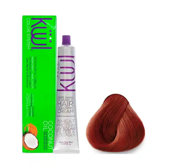 KUUL TINTURA PERMANENTE - TINTE 7.66 RUBIO ROJO INTENSO Contenido Neto: 90 ml e 3.04 fl oz. Incluye Oxigenta 135ml DESCRIPCIÓN: Sistema de coloración que incorpora en su fórmula componentes nutritivos como la proteína de trigo y aceite mineral que brindan ingredientes esenciales para la regeneración del cabello, dando como resultado sedosidad, hidratación, brillo y color intenso. Gracias a su fórmula, Küül Color System aporta una mayor cantidad de pigmentos que prolongan la intensidad del color en el cabello y está enriquecido con filtro solar para una mayor protección.