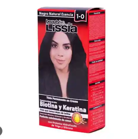 Tinte de cabello Marca Lissia colo Negro, es un tubo o sobre incluye agua oxigenada de 20, fijador y guantes