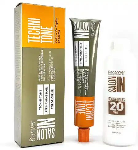 La mezcla Salon In rinde 150 mL combinando 60 g de tintura con 90 mL de revelador (1 + 1½), suficiente para un cabello hasta los hombros. Techni Tone ofrece una textura cremosa y ligera que facilita su aplicación, asegurando una cobertura óptima de canas con una sola pasada, siempre que se elija el tono y revelador adecuados.
