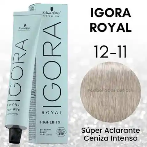 TINTURA IGORA ROYAL 12-11 SUPER ACLARANTE CENIZA INTENSO 60 G : ha sido desarrollado por coloristas que te permite dar rienda suelta a tu creatividad proporcionándote las herramientas necesarias para transformar la imaginación a realidad, con resultados de color fieles a la carta de color y una fiabilidad superior incluso con los cabellos más exigentes.