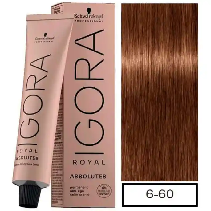 TINTURA IGORA ROYAL 6-60 RUBIO OSCURO CHOCOLATE NATURAL 60 G : ha sido desarrollado por coloristas que te permite dar rienda suelta a tu creatividad proporcionándote las herramientas necesarias para transformar la imaginación a realidad, con resultados de color fieles a la carta de color y una fiabilidad superior incluso con los cabellos más exigentes.