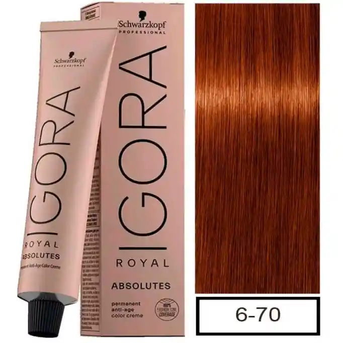 TINTURA IGORA ROYAL 6-70 RUBIO OSCURO COBRIZO NATURAL 60 G : ha sido desarrollado por coloristas que te permite dar rienda suelta a tu creatividad proporcionándote las herramientas necesarias para transformar la imaginación a realidad, con resultados de color fieles a la carta de color y una fiabilidad superior incluso con los cabellos más exigentes.