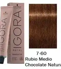 TINTURA IGORA ROYAL 7-60 RUBIO MEDIO CHOCOLATE NATURAL 60 G : ha sido desarrollado por coloristas que te permite dar rienda suelta a tu creatividad proporcionándote las herramientas necesarias para transformar la imaginación a realidad, con resultados de color fieles a la carta de color y una fiabilidad superior incluso con los cabellos más exigentes.
