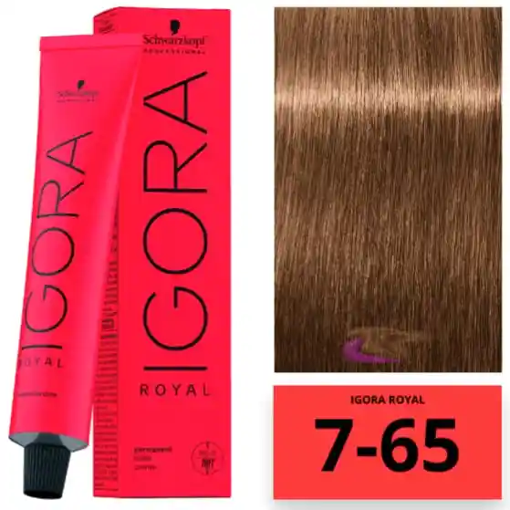TINTURA IGORA ROYAL 7-65 RUBIO MEDIO CHOCOLATE DORADO 60 G : ha sido desarrollado por coloristas que te permite dar rienda suelta a tu creatividad proporcionándote las herramientas necesarias para transformar la imaginación a realidad, con resultados de color fieles a la carta de color y una fiabilidad superior incluso con los cabellos más exigentes.