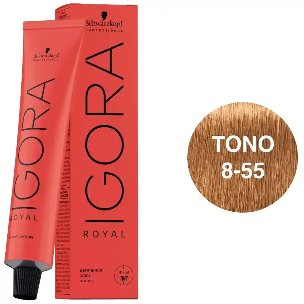 TINTURA IGORA ROYAL 8-55 RUBIO CLARO DORADO INTENSO 60 G : ha sido desarrollado por coloristas que te permite dar rienda suelta a tu creatividad proporcionándote las herramientas necesarias para transformar la imaginación a realidad, con resultados de color fieles a la carta de color y una fiabilidad superior incluso con los cabellos más exigentes.