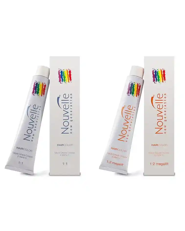 DESCRIPCIÓN: Coloración permanente en crema, que permite obtener tonos brillantes y naturales, salvaguardando la estructura del cabello. Excelente adherencia a la fibra capilar, total cobertura de las canas, color pleno y excepcional profundidad de tono, además de larga duración. Formulación 1:1. 100ml de crema por 100ml de oxidante, para una mezcla total de 200ml. La gama de tonalidades se enriquece con los superclarificadores Megalift, que ofrecen rubios sumamente claros y luminosos. DISPONIBLE EN 107 TONOS. La gama de tonalidades se enriquece con los superclarificadores Megalift, que ofrecen rubios sumamente claros y luminosos. DISPONIBLE EN 107 TONOS. Doble contenido y mayor rendimiento. Incluye: Tubo x 100ml Oxigenta Activadora