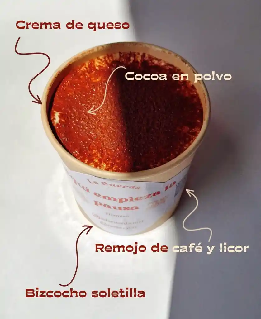 Capas de bizcocho soletilla remojado en café y un toque de licor, crema de queso suave y un final de cacao en polvo. Un clásico italiano en versión grande para disfrutar a cucharadas🤍 Tamaño: 12oz