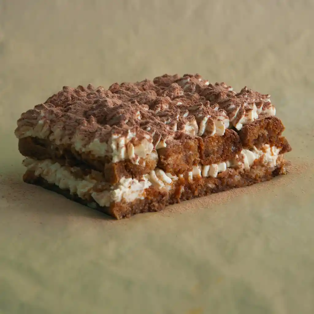Postre tradicional italiano, dos capas de galleta bañanada con espresso y cubierto con mezcla de chantylli y mascarpone, con el toque balanceado de la cocoa.