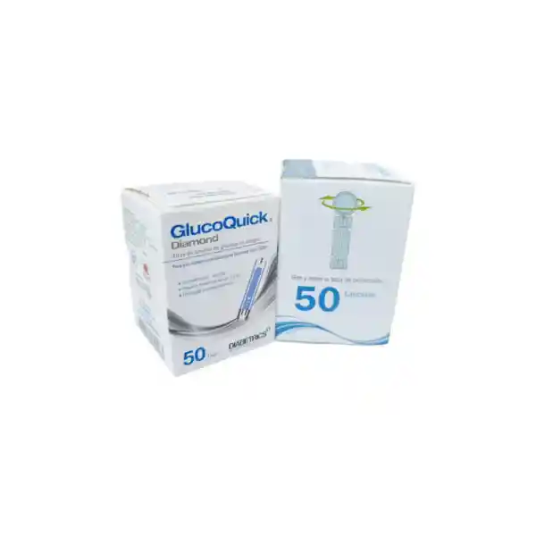 50 TIRILLAS + 50 LANCETAS PARA PRUEBA DE GLUCOSA EN SANGRE. GLUCOQUICK DIAMOND