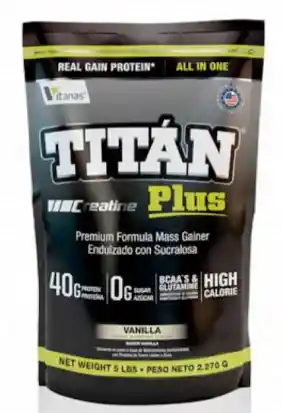 TITÁN PLUS Proteína concentrada de Suero Lácteo en polvo, con carbohidratos de fácil asimilación, glutamina, BCAA’s, vitaminas y minerales. Con macronutrientes que brindan el aporte calórico requerido en procesos de aumento de masa muscular. Con NutraFlora (fibra prebiótica). Modo de uso de Titán Plus: Divida 1 servicio (7 scoops) en 3 tomas al día. Cada toma mezclarla con 12 oz. de agua o leche baja en grasa. Tomar al levantarse, después del entrenamiento y antes de dormir.