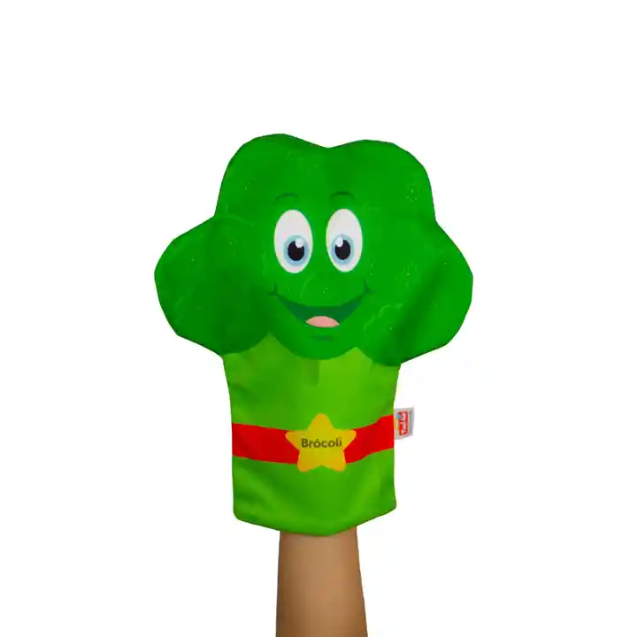 El Títere de Mano de Brócoli hace parte de la colección de títeres de frutas y verduras, con la cual ayudamos promover el consumo de frutas y verduras de los 5 colores de la salud tanto en niños y adultos jugando y compartiendo Momentos Significativos de Aprendizaje. “Los colores de la salud” es una estrategia del gobierno chileno, que busca estimular el consumo de frutas y verduras en la población y dar a conocer todos los beneficios que su consumo tiene para la salud. Lo ideal es que un plato de comida tenga al menos de dos a tres colores de frutas y/o verduras. Consume en el día los cinco colores. Edad recomendada A partir de los 6 meses de edad