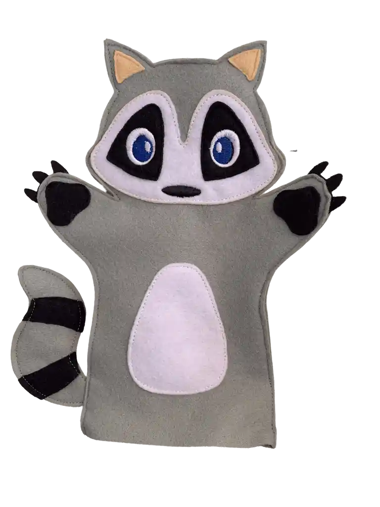 Títere en paño lency de 25 cm de alto en forma de Mapache.