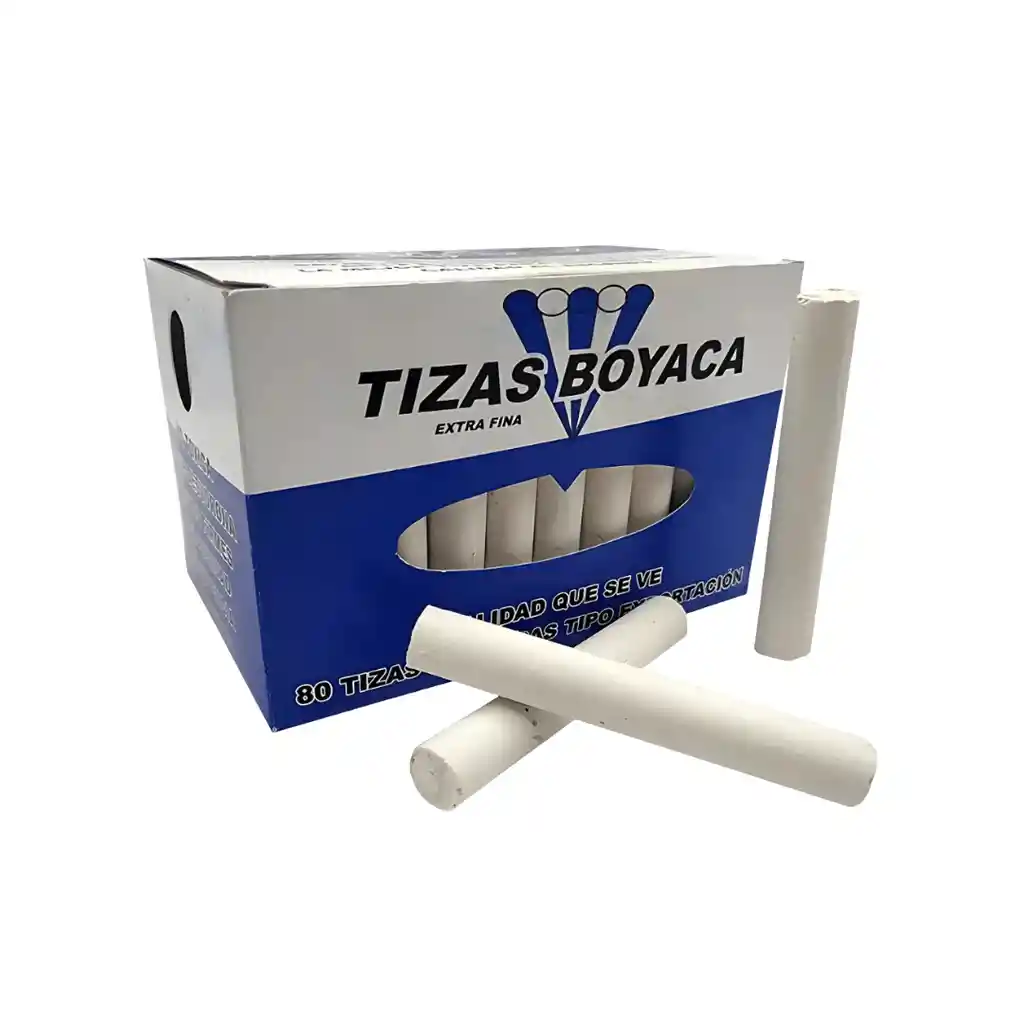 Caja con 80 tizas blancas no tóxicas, ideales para tableros, letreros y usos escolares o artísticos.