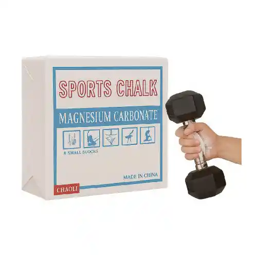 suplemento de agarre estándar profesional, diseñado específicamente para absorber la humedad y mejorar la fricción en diversas disciplinas deportivas. Composición: 100% Carbonato de Magnesio puro ( ). Presentación: Bloque sólido comprimido (fácilmente triturable si se prefiere en polvo). Peso por bloque: Aproximadamente 56 g (2 oz). Dimensiones del bloque: Aproximadamente 9 x 9 x 4.5 cm. Empaque estándar: Caja que contiene 8 bloques (peso total aproximado de 448 g - 480 g). Textura: Tiza fina de alta calidad que se adhiere profundamente a los pliegues de la piel para un agarre superior.