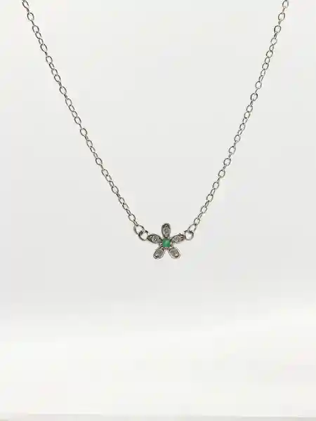 Una Esmeralda Para Ser Feliz! Gargantilla en Plata. Acabado: Baño en Rodio Chispita de Esmeralda Colombiana Natural y Circones.