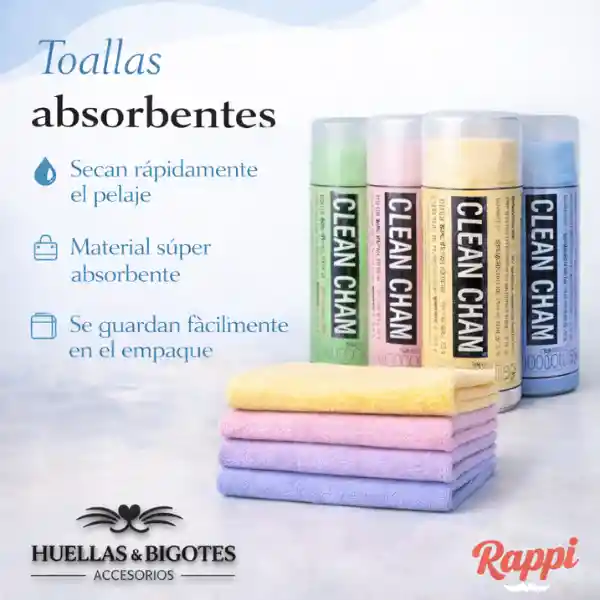 Alta absorción y gran poder de limpieza. Tacto suave y superficie lisa, ideal para mascotas. Resistente a bacterias y moho. Material ecológico y duradero. Reduce el tiempo de secado en grooming canino. Recomendaciones de Uso y Cuidado Lavar con agua fría y detergente o jabón suave. Para reutilizar o revitalizar, sumergir la toalla en agua antes de usar. Después del uso, mantener ligeramente húmeda en su estuche.
